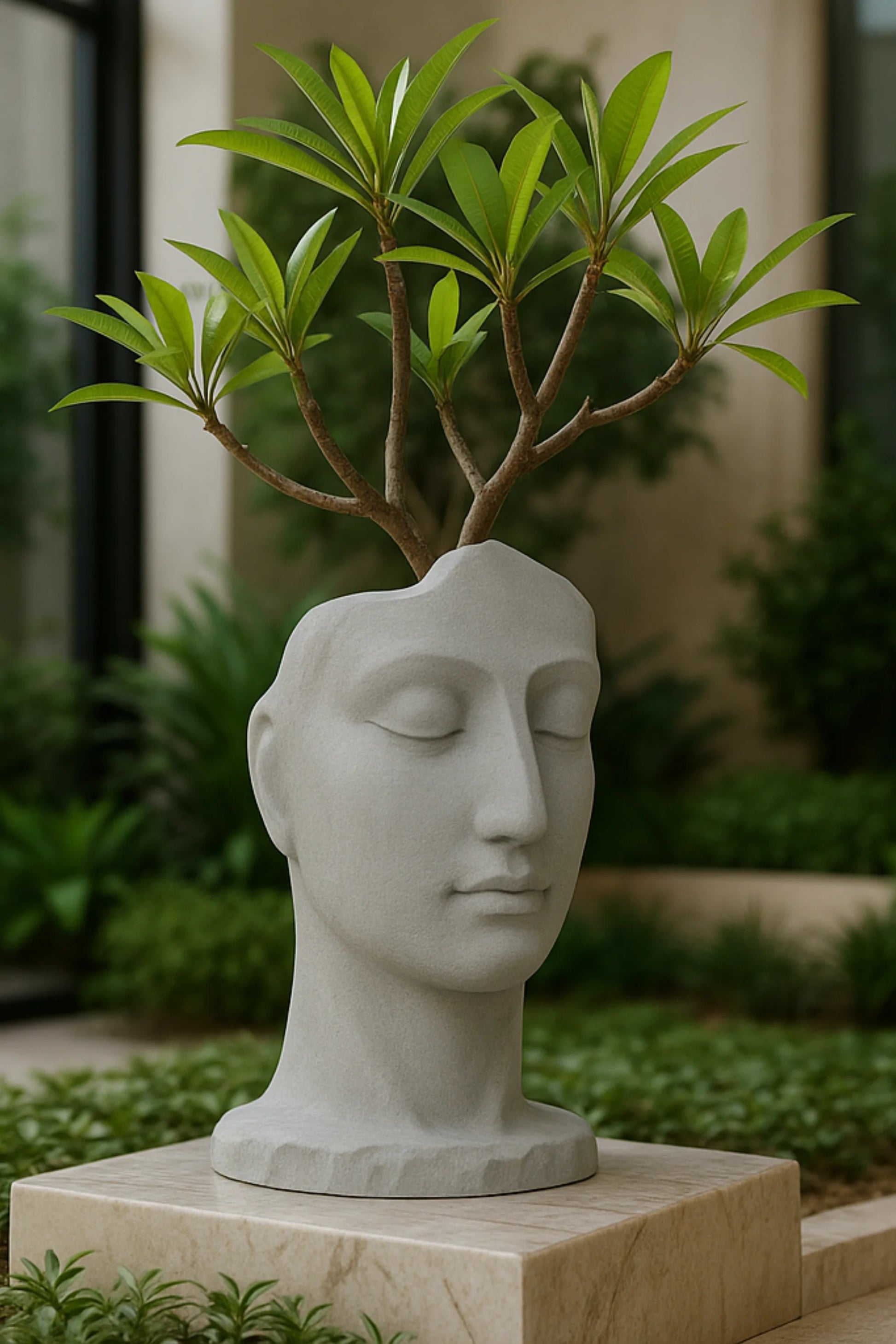Crafted from durable GRC, this mural combines earthy textures with a refined design that complements greenery and stone landscapes. Perfect for outdoor gardens, courtyards, or as a bold indoor accent, it transforms any space into a serene, artistic setting.