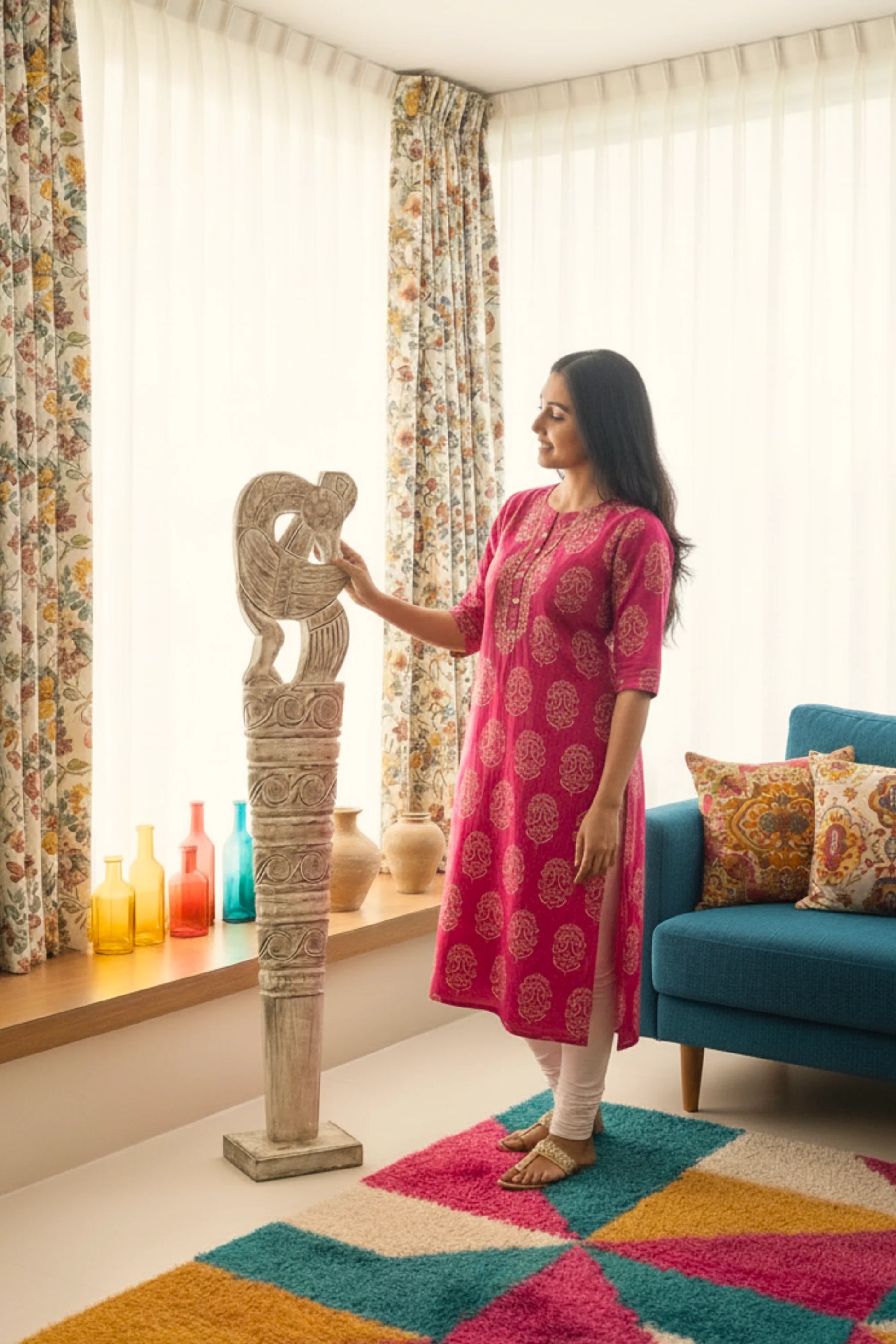 Very satisfied with my purchase of this beautiful sculpture. Acts as a great accent piece in my home decor. I had been on a lookout for stone sculptures, but they were either too expensive or small in size. This perfectly fits my requirements and the price is just right.