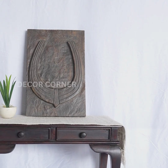 Wild Bison Horn Hand Carved Wooden Wall Panel