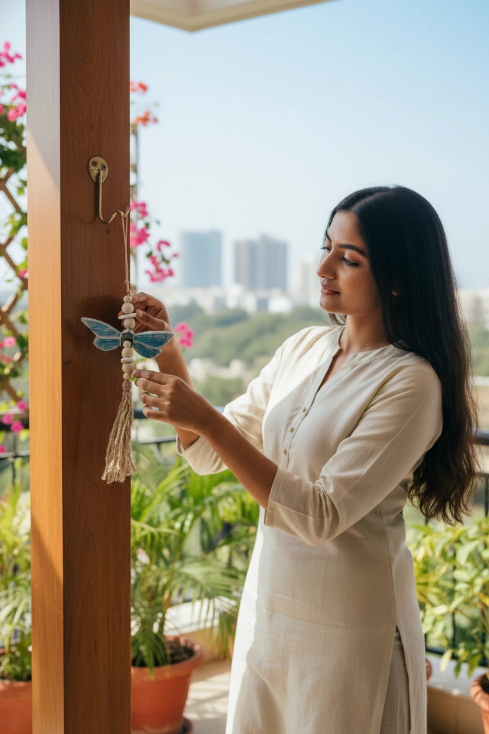 I bought the wind chime for my balcony, with Chennai weather turning nippy I am spending a lot of time here. Love the product, surely soothing sounds with every gust of wind.